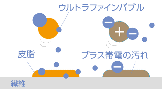 ウルトラファインバブルが繊維の奥まで入り込み汚れを吸着して落とします。