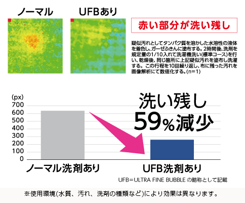 UFB水で洗濯したときの洗い残しをノーマル水で洗濯した時と比較。