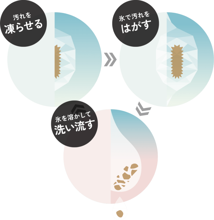 油汚れやホコリを凍らせて、浮かせて、キレイに洗浄!